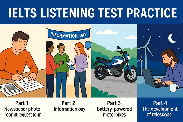 IELTS Listening Test IELTS Test taker ID 🔊 Audio is paused Section 1 Listen and answer questions 1-10. Questions 1-40 Complete the notes, flow-charts, and sentences below…